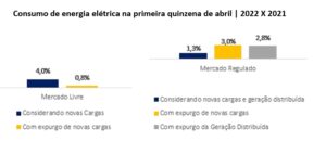 Fonte: https://www.canalenergia.com.br/noticias/53209755/ccee-aponta-aumento-de-22-no-consumo-de-energia-na-primeira-quinzena-de-abril