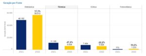 Nas duas primeiras semanas de abril, e em relação ao mesmo período do ano passado, houve um aumento de 17% na produção de energia elétrica a partir de hidrelétricas, resultado do cenário hidrológico mais favorável. Consequentemente, as termelétricas recuaram 47%. O momento também foi de alta para geração de energia solar, que, impulsionado por melhores condições climáticas e pela inserção de novas usinas, cresceu quase 60% na comparação anual. Já os parques eólicos produziram 22% menos energia em relação a 2021.