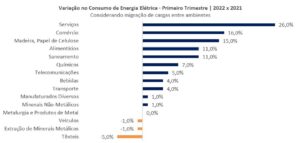Segundo dados preliminares da CCEE, o mês de março foi o que mais puxou o aumento no período, resultado da maior movimentação da economia interna do país, com a retirada das restrições para combate à pandemia de COVID-19 e de um cenário internacional favorável para exportações de setores como o petroquímico e de mineração.