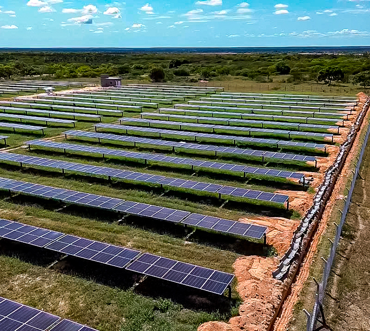A UFV Jaguaruana I, localizada no Ceará, tem como meta gerar 2.573 MWh no primeiro ano, reduzindo 197,7 ton. de CO₂, o equivalente a 1.384,5 árvores plantadas. Atendendo 715 residências anualmente e equipada com 1.936 módulos fotovoltaicos, é um marco na promoção da energia sustentável local.